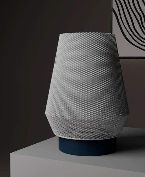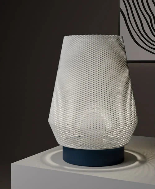 Fabricada con materiales eco amigables y sustentables, combina innovación, diseño y tecnología, ofreciendo soluciones únicas para cualquier ambiente. Esta lámpara impresa en 3D puede ser utilizada tanto en el escritorio o mesa como colgante.
