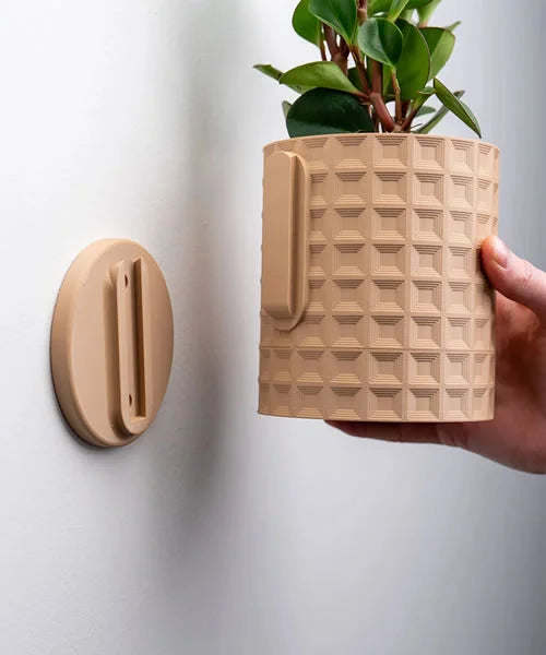 Fabricada con materiales eco amigables y sustentables, esta maceta impresa en 3D puede ser utilizada tanto en la pared como en el escritorio o mesa. Dale un toque de sofisticación a tu espacio con esta pieza que respeta el medio ambiente.